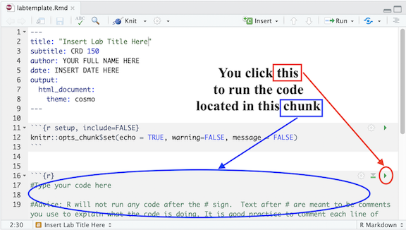 template here. When you knit your Rmd (we’ll get to what knitting means