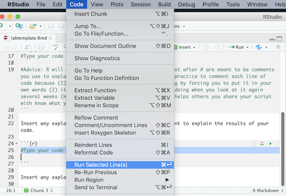 - Make sure your code works. Run code one chunk at a time to make sure