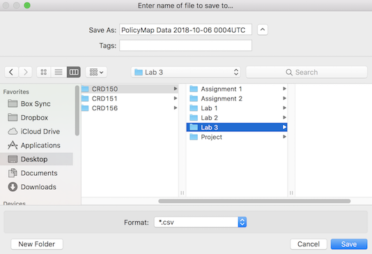 Save the file into an appropriate folder, specifically the folder that contains your Lab 3 RMarkdown, such as below (Mac laptop)