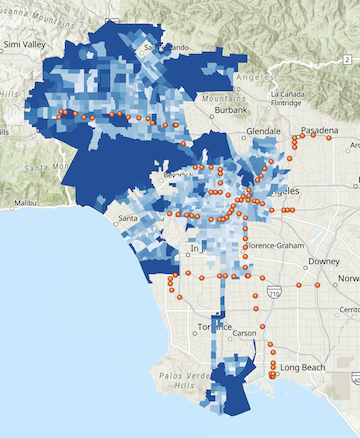 the map “Los Angeles Tracts and Metro Stations”. You will find yourself