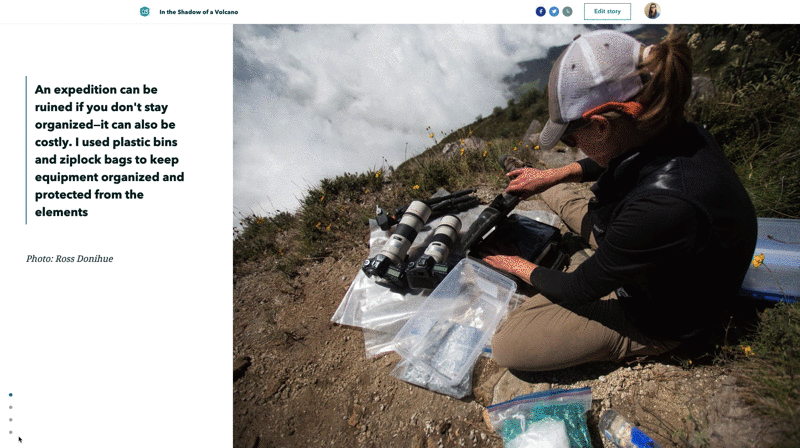 Explore the use of a Floating Panel sidecar on your own. Floating panels are placed to minimize interference with the images as readers scroll. Text within the sidecar sections is short (for longer text it’s usually advisable to use the docked panel layout).